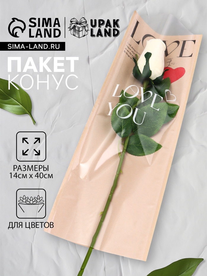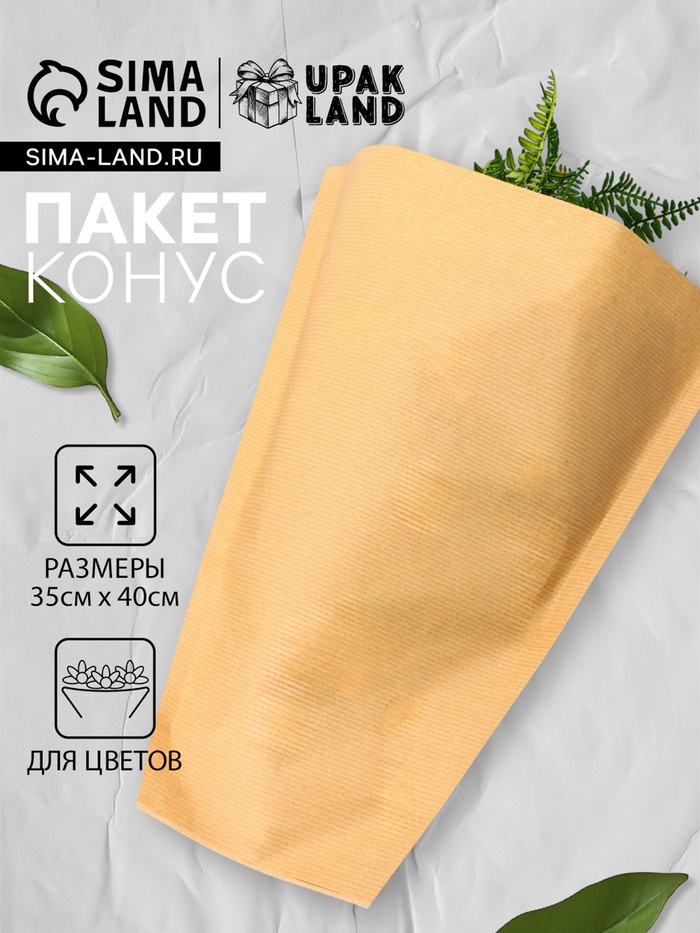 Пакет цветочный конус. Конусная упаковка - это полипропиленовый пакет в виде усеченного перевернутого конуса. В кулек такой формы удобно паковать букеты цветов, листья салата, пучки зелени и даже цветы в горшках - узкая нижняя часть позволяет держать пакет в руке без лишнего дискомфорта. Подходит для упаковки подарков, скрапбукинга, оригами и других видов творчества.
