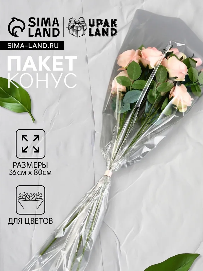 Пакет для цветов, конус, 15+36×80 см, прозрачный — Характеристики