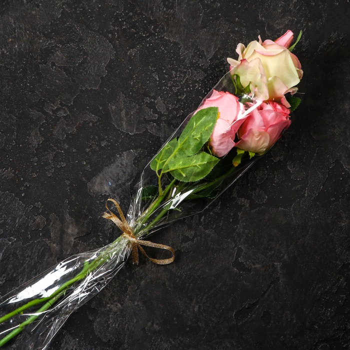 - Прозрачность БОПП-пленки: Материал демонстрирует цветы без искажений, устойчив к разрывам. Сохраняет прозрачность даже при контакте с водой.