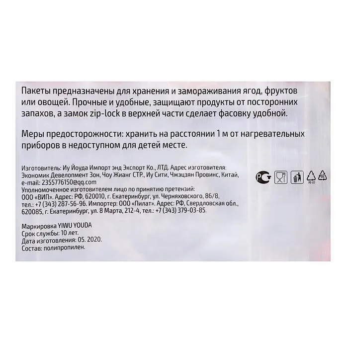 Пакеты предназначены для хранения и замораживания ягод, фруктов или овощей. Прочные и удобные, защищают продукты от посторонний запахов, а замок zip-lock в верхней части сделает фасовку удобной.