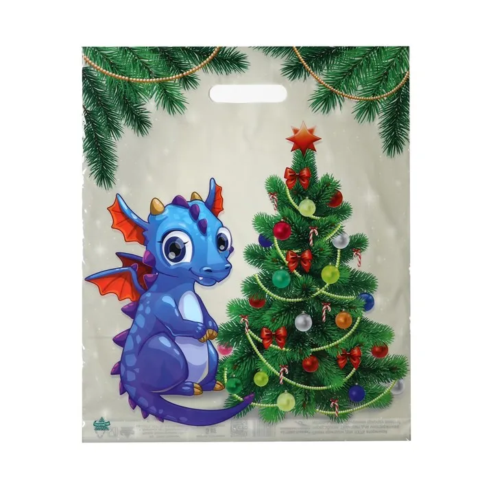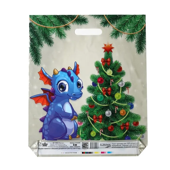 Пакет "Дракоша у елки", полиэтиленовый с вырубной ручкой, 45 х 38 см, 60 мкм — Характеристики