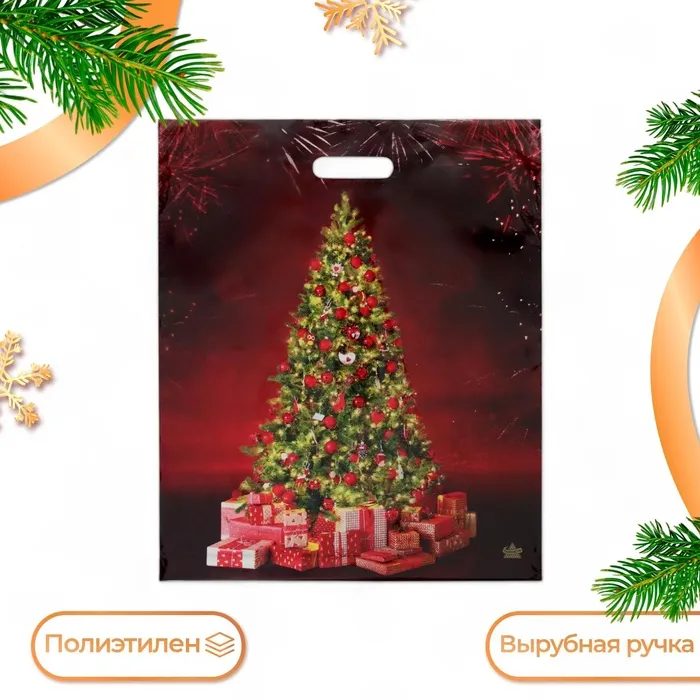 Пакет "Елочное сияние", полиэтиленовый с вырубной ручкой, 45 х 38 см. — Характеристики