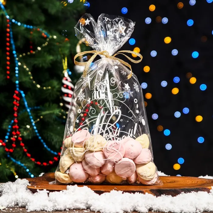 Новогодний Пакет фасовочный БОПП - это идеальное решение для упаковки ваших праздничных подарков с элегантным и праздничным стилем. Изготовленный из прочного биаксиально-ориентированного полипропилена (БОПП), этот пакет обеспечивает прозрачность и блеск, придавая вашим подаркам эффектное и яркое визуальное восприятие.