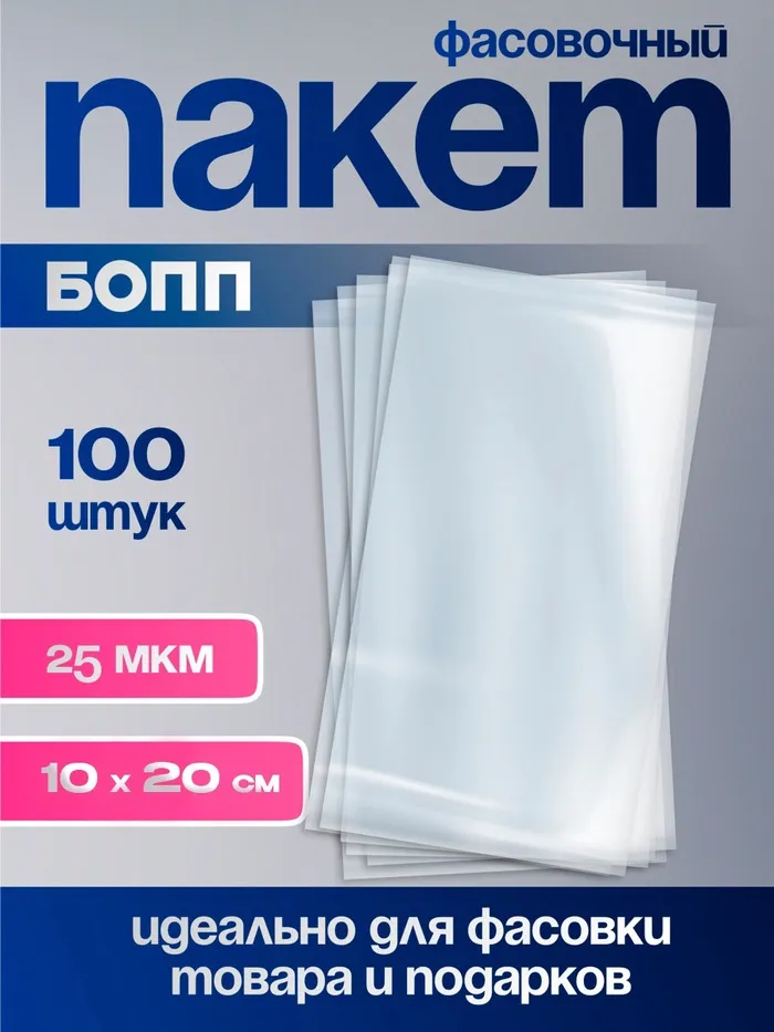 Пакет фасовочный БОПП, прозрачный, 10 × 20 см, 25 мкм — Характеристики