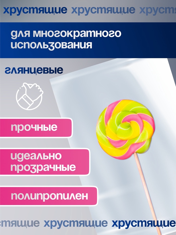 Биаксиально-ориентированные полипропиленовые пакеты. Для них характерна прочность на растяжение, устойчивость к разрывам, проколам. Высокая прозрачность позволяет разглядеть товар, не вскрывая упаковки. Глянцевый материал привлекает внимание покупателей.