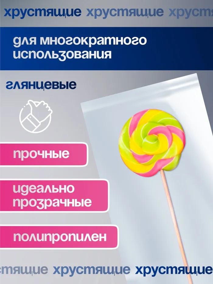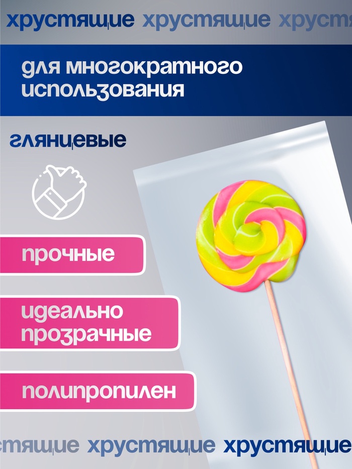 Биаксиально-ориентированные полипропиленовые пакеты. Для них характерна прочность на растяжение, устойчивость к разрывам, проколам. Высокая прозрачность позволяет разглядеть товар, не вскрывая упаковки. Глянцевый материал привлекает внимание покупателей.
