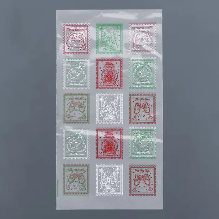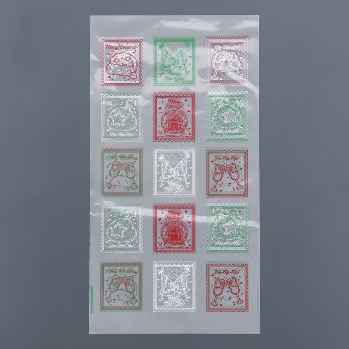 Пакет фасовочный БОПП, с новогодним рисунком «Марки», 15×30 см — Характеристики