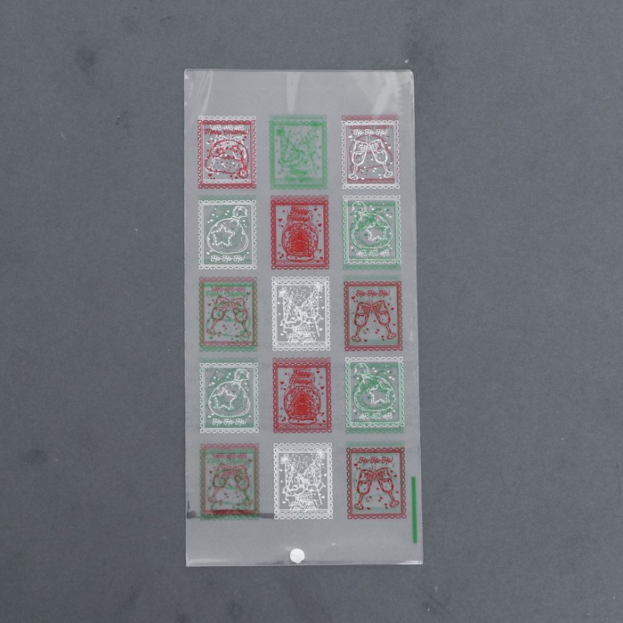 Пакет фасовочный БОПП, с новогодним рисунком «Марки», 9×19 см