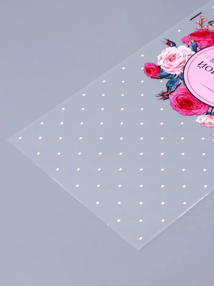 - Изготовлен из прочного материала БОПП толщиной 25 мкм, что обеспечивает долговечность и защиту содержимого.