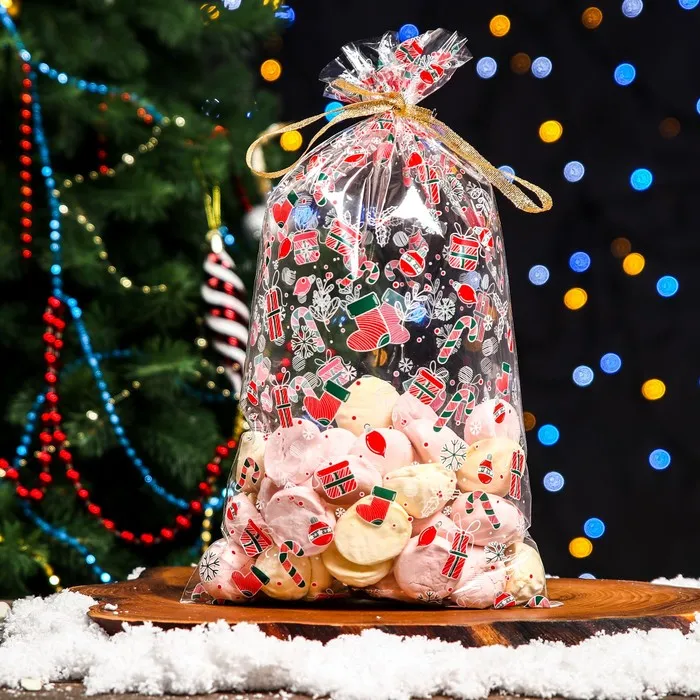 Новогодний Пакет фасовочный БОПП - это идеальное решение для упаковки ваших праздничных подарков с элегантным и праздничным стилем. Изготовленный из прочного биаксиально-ориентированного полипропилена (БОПП), этот пакет обеспечивает прозрачность и блеск, придавая вашим подаркам эффектное и яркое визуальное восприятие.