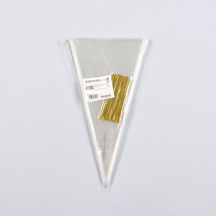 Упаковочные пакеты конусы выполнены из высококачественного прозрачного полипропилена. Треугольный пакет отличная упаковка для сладостей, орехов, безе, зефира, конфет, вафельных рожков.