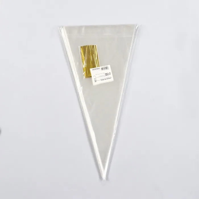 Упаковочные пакеты конусы выполнены из высококачественного прозрачного полипропилена. Треугольный пакет отличная упаковка для сладостей, орехов, безе, зефира, конфет, вафельных рожков.