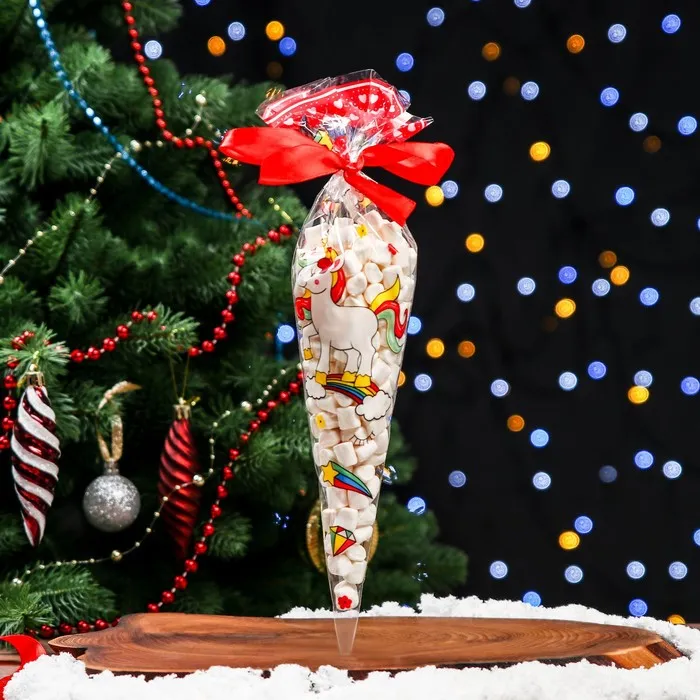 Упаковочные пакеты конусы выполнены из высококачественного прозрачного полипропилена. Треугольный пакет отличная упаковка для сладостей, орехов, безе, зефира, конфет, вафельных рожков.