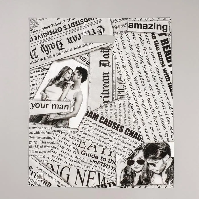 Сумка с характером для ярких образов! Пакет с газетным принтом, 38x45 см — это стильный аксессуар с винтажным дизайном. Ламинация усиливает графику текстов и букв, создавая эффект настоящей газетной полосы. Такой пакет сам становится частью подарка.