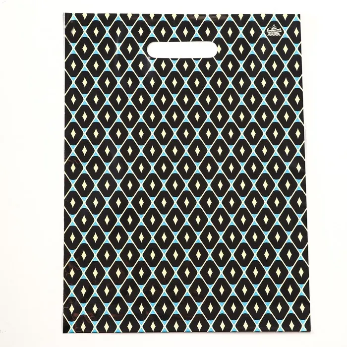 Пакет полиэтиленовый с вырубной ручкой, прочный с оригинальным рисунком.