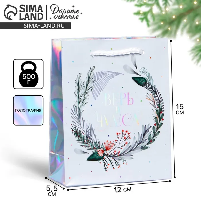 Пакет голографический «Чудеса рядом», 12 х 15 х 5.5 см — Характеристики