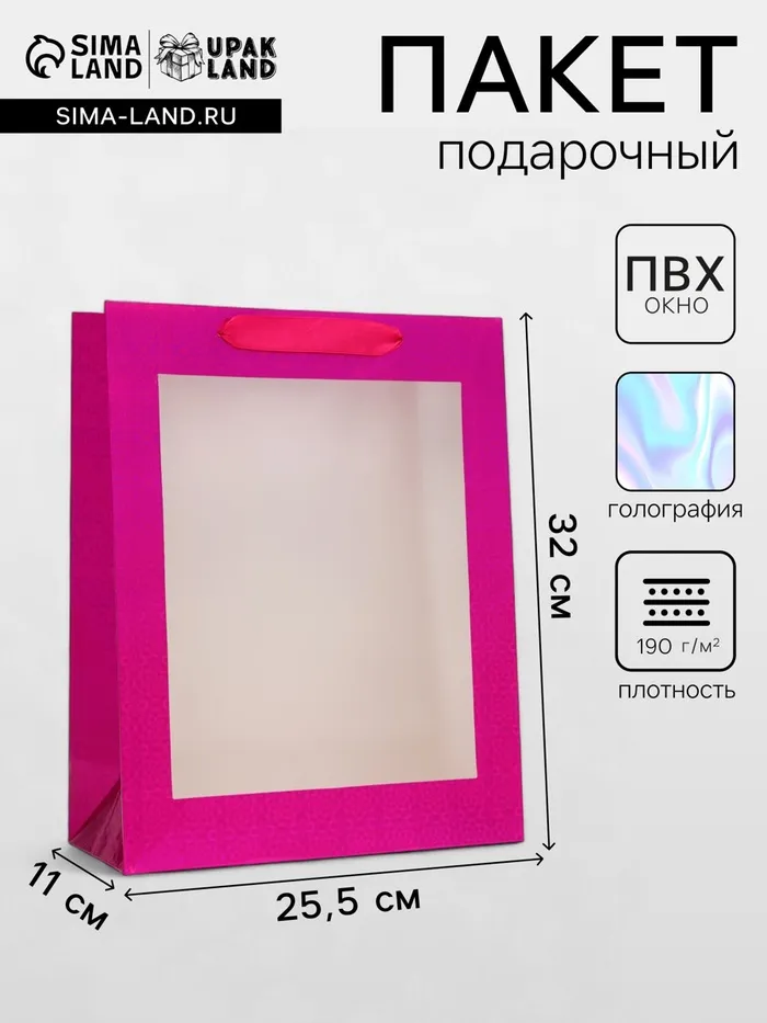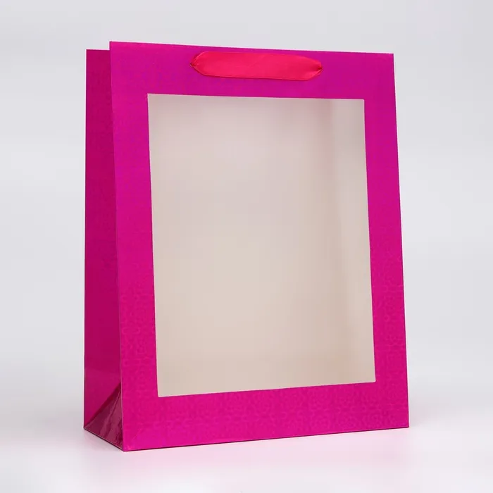 Пакет голография с окном, «Розовый», M 32×25.5×11 см набор 1 шт. — Характеристики