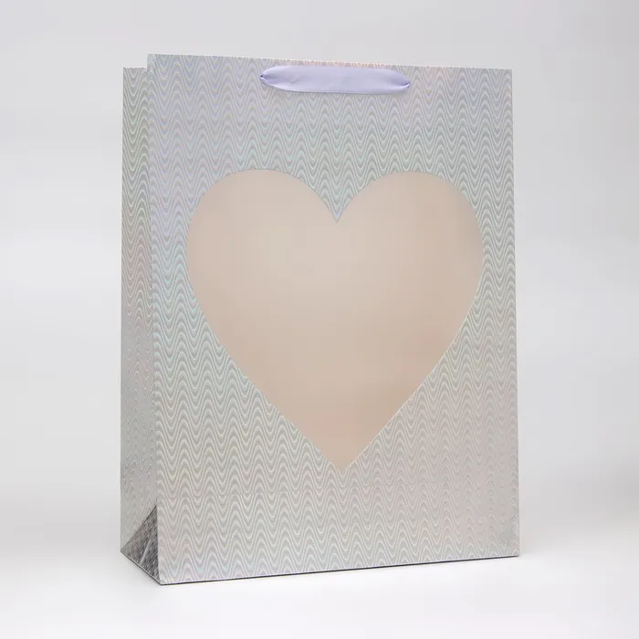 Пакет голография с окном «Сердце», «Серебряный», L 40×30×13 см набор 1 шт. — Характеристики