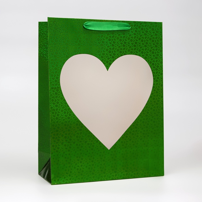 Пакет голография с окном «Сердце», «Зеленый», L 40×30×13 см набор 1 шт. — Характеристики