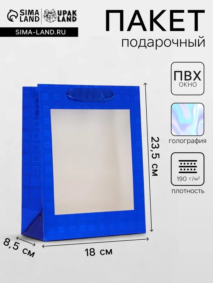 Пакет голография с окном, «Синий» S 23.5×18×8.5 см набор 1 шт. — Характеристики