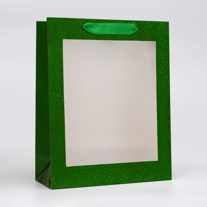 Пакет голография с окном, «Зеленый», M 32×25.5×11 см набор 1 шт. — Характеристики