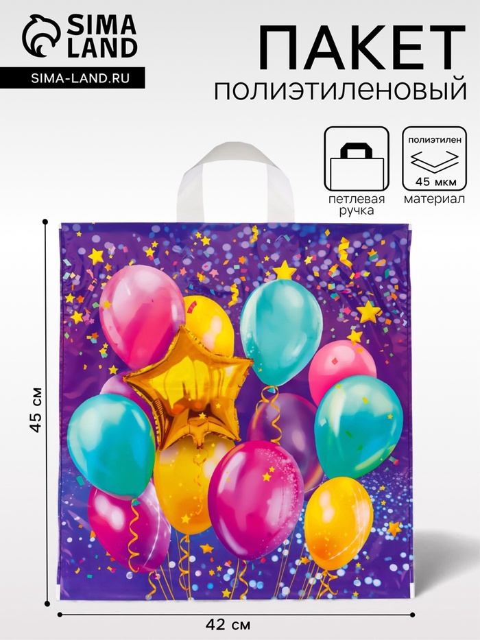 - Максимальная прочность для надёжности: Полиэтилен ПВД толщиной 80 мкм обеспечивает жёсткость, необходимую для сохранения чёткости сложного разноцветного рисунка на большом пространстве. Пакет не деформируется под весом.