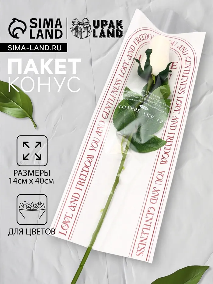 Пакет конус, для цветов, красный, 14×40 см — Характеристики