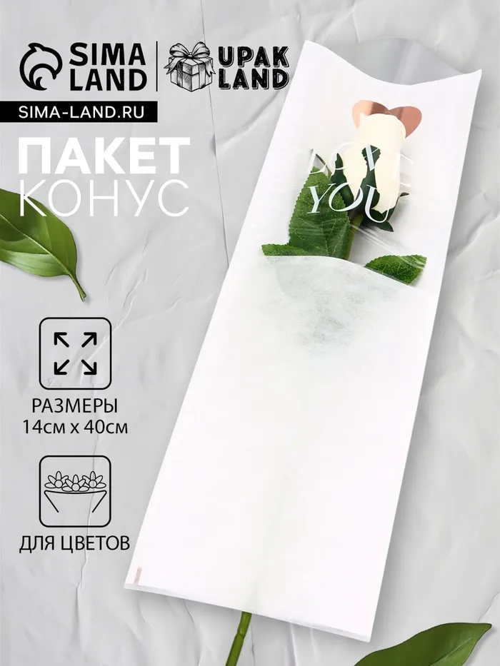 Пакет - конус для цветов, «Люблю», белый, 14×40 см — Характеристики