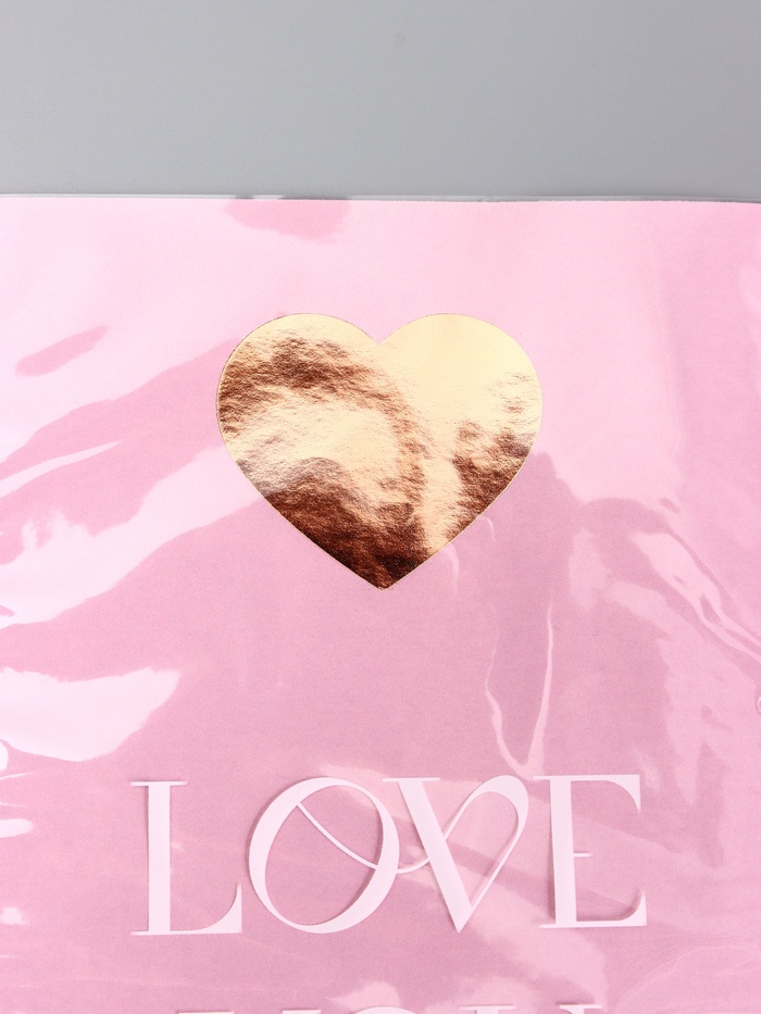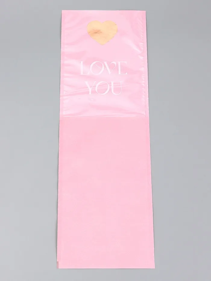 Пакет - конус для цветов, «Люблю», розовый, 14×40 см — Характеристики