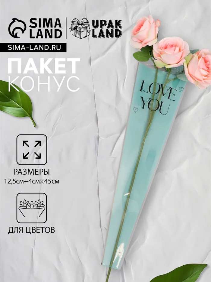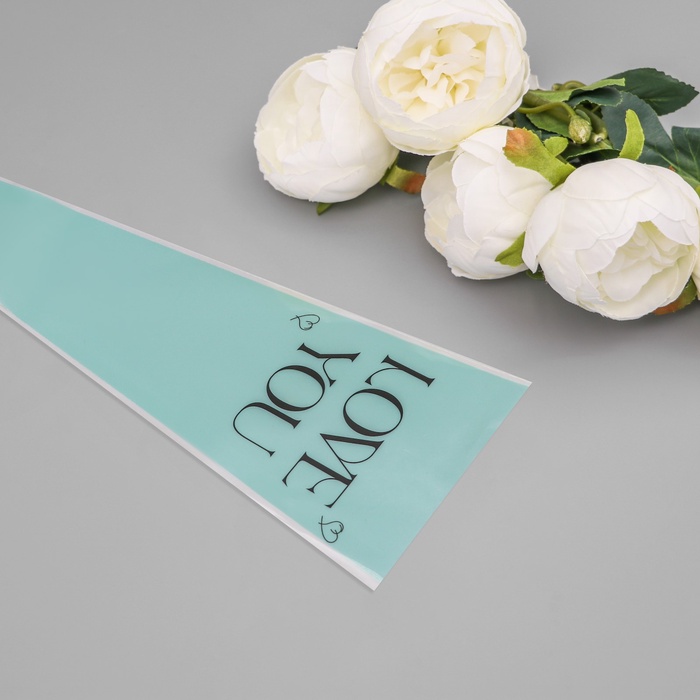 Пакет конус для цветов, «Люблю тебя», 12.5+4×45 см, голубой — Характеристики