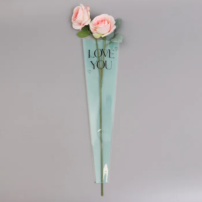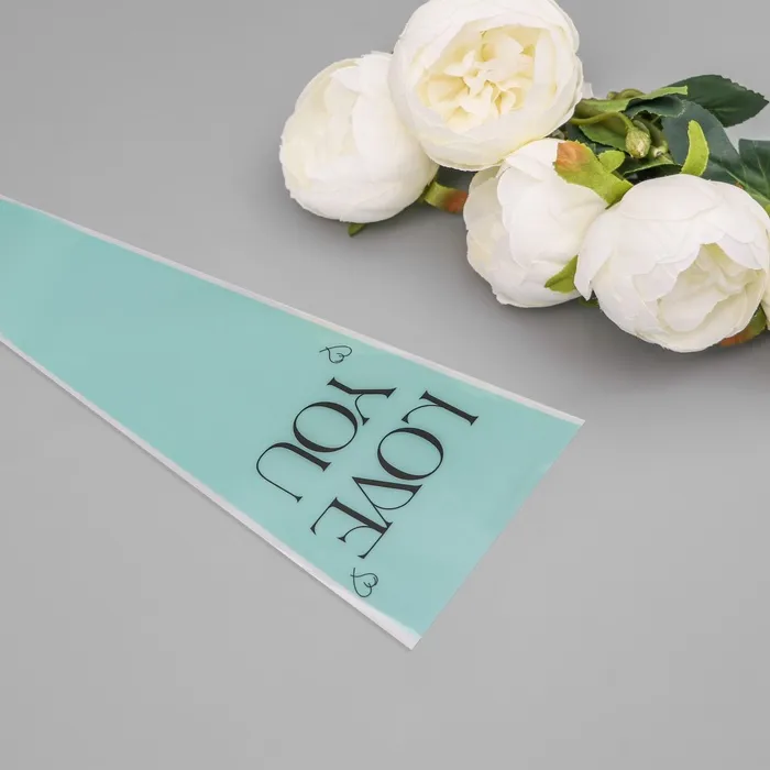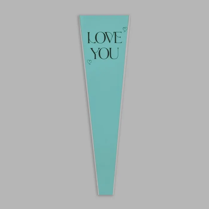 Нежная упаковка с признанием в любви! Конус-пакет «Люблю тебя» (бирюзовый, 12.5×45 см) — стильное решение для цветочных композиций и небольших подарков. Свежий бирюзовый оттенок с прозрачными вставками создаёт лёгкое романтичное настроение.