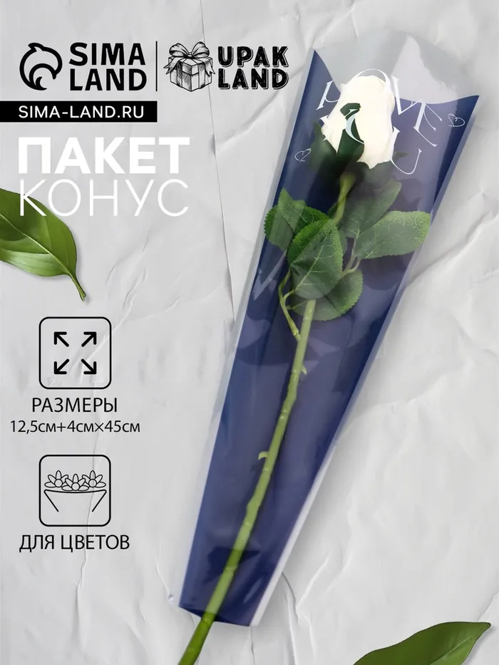 Пакет конус для цветов, «Люблю тебя», 12.5+4×45 см, синий — Характеристики
