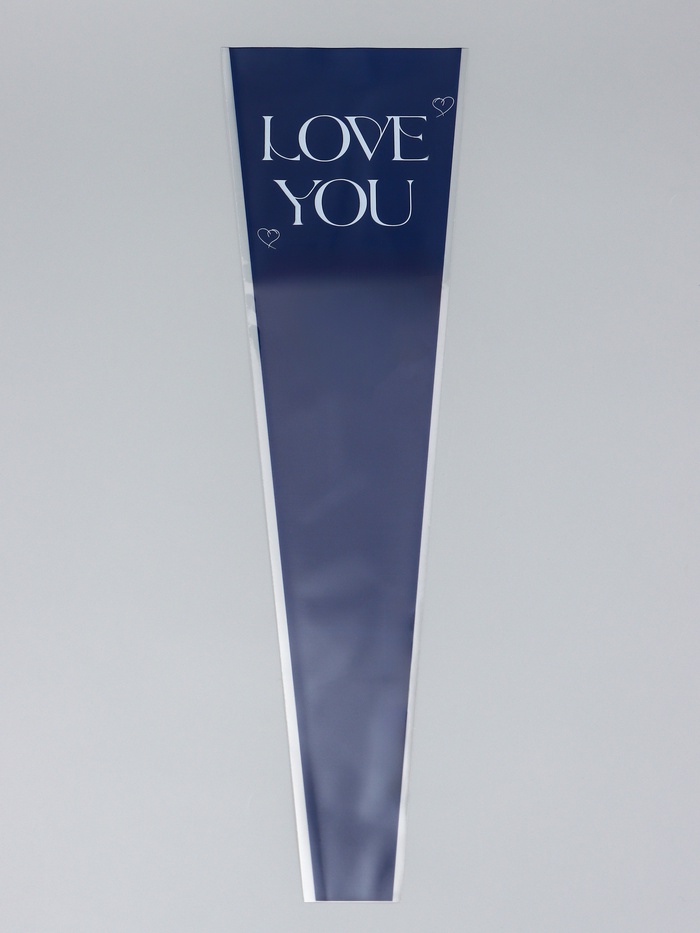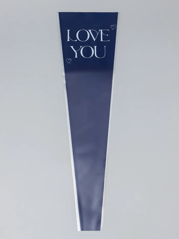 Стильная упаковка для особенных моментов! Конус-пакет «Люблю тебя» (синий, 12.5×45 см) — выразительное решение для цветов и подарков. Глубокий синий цвет с прозрачными элементами и романтичной надписью создаёт элегантный образ без лишних деталей.