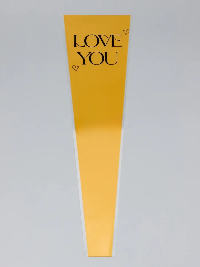 Солнечное настроение в каждой детали! Конус-пакет «Люблю тебя» (золотистый, 12.5×45 см) — яркое решение для цветов и подарков. Тёплый золотистый оттенок с прозрачными вставками создаёт праздничное настроение и подчёркивает ценность момента.