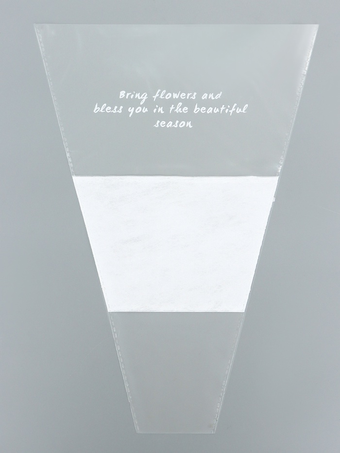 - Конусная форма пакета позволяет удобно зафиксировать букет, предотвращая рассыпание лепестков и листьев.