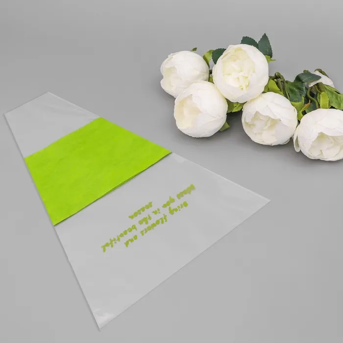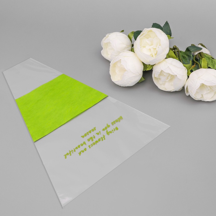 - Практичная конструкция: Внутренний нетканый слой скрывает стебли, а прозрачная часть демонстрирует цветы. БОПП-материал сохраняет свежесть букета.