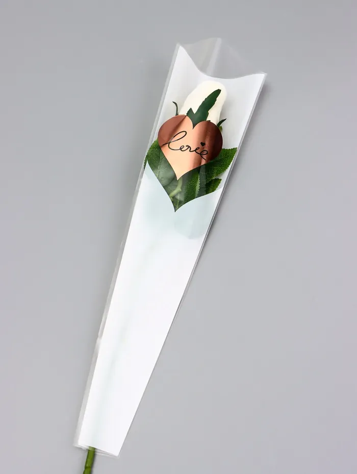 Чистота чувств: Этот конус превращает цветы в искренний жест. Белый цвет символизирует чистоту намерений, а продуманная конструкция сохраняет свежесть растений. Выбор для тех, кто ценит сдержанную выразительность.