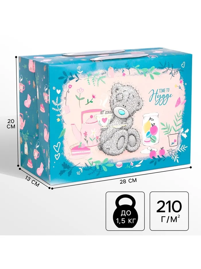 Пакет-коробка, 28 х 20 х 13 см «Time to hygge», упаковка, Me To You — Характеристики
