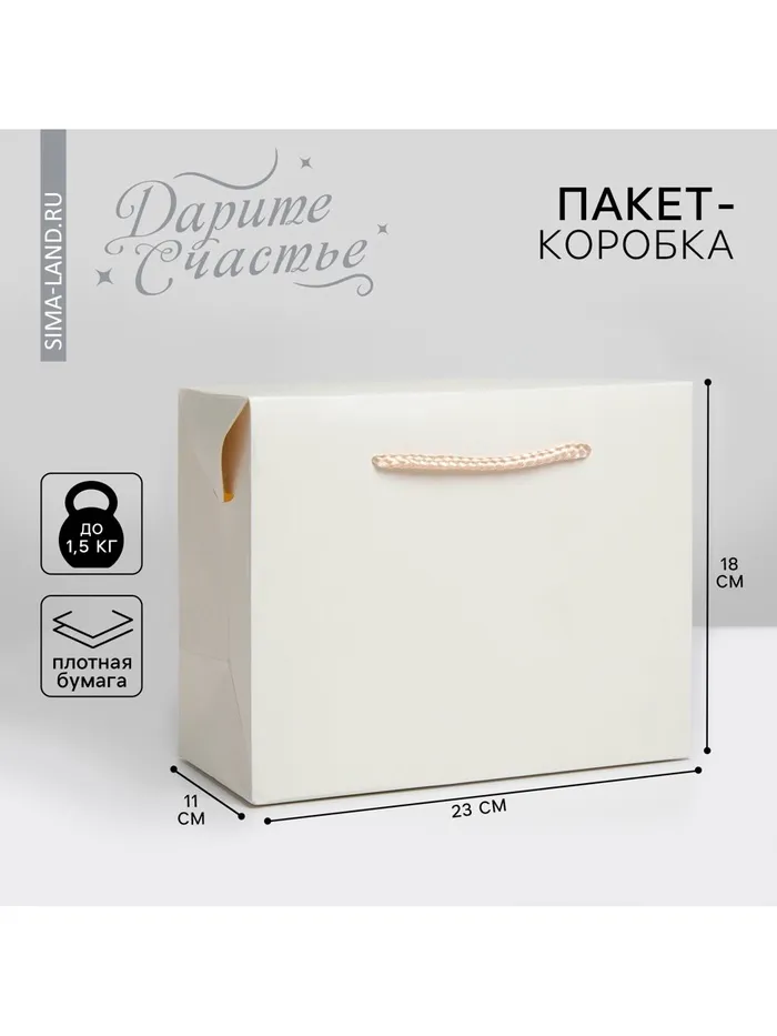 Пакет—коробка, подарочная упаковка, «Белый», 23 х 18 х 11 см — Характеристики