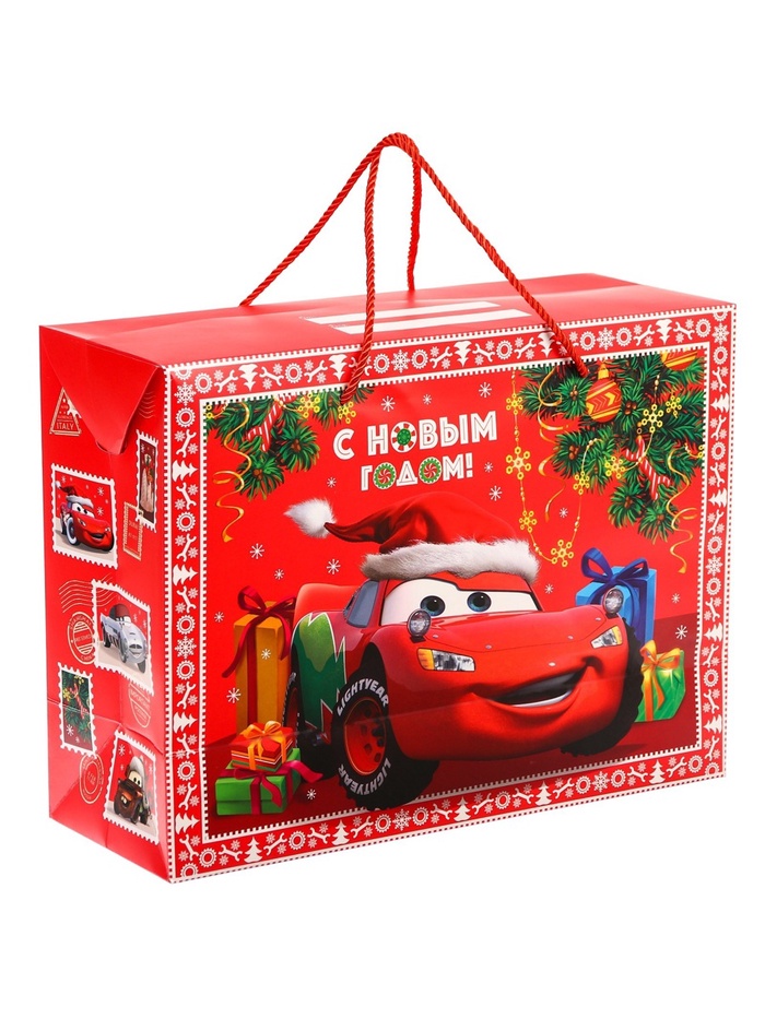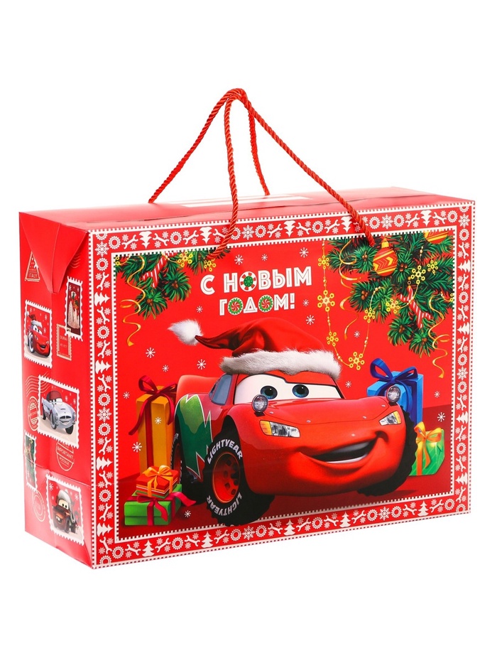 Пакет-коробка «С Новым Годом!», 19×40×30 см, Тачки — Характеристики