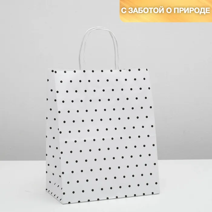 Пакет крафт, белый, «Горошек», 24 х 10,5 х 32 см — Характеристики
