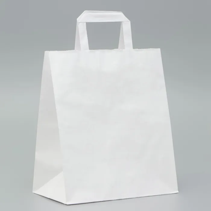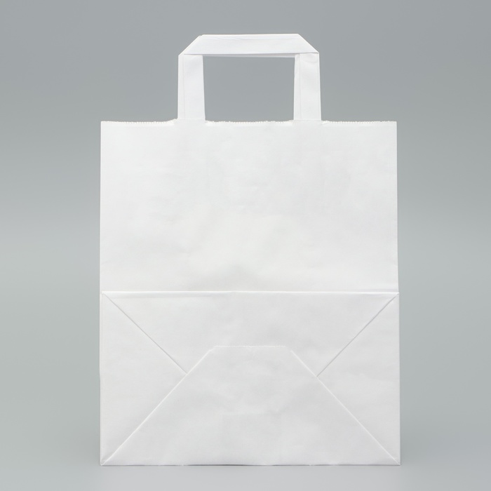 Пакет крафт без печати, белый, плоская ручка 24 х 14 х 28 см — Характеристики