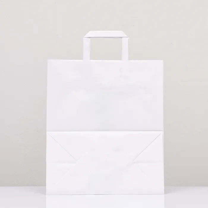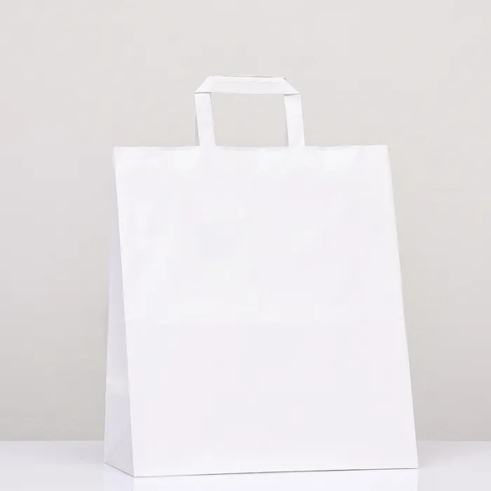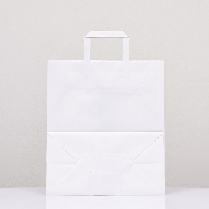Пакет крафт без печати, белый, плоская ручка 28 х 15 х 32 см — Характеристики