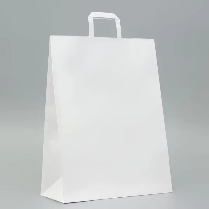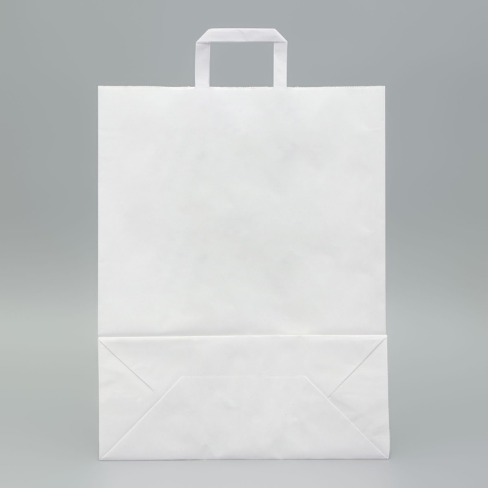 Пакет крафт без печати, белый, плоская ручка 35×15×45 см — Характеристики