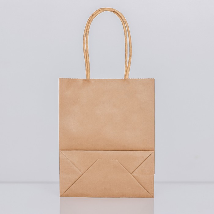 Пакет крафт без печати, круглая ручка, 15×11×6 см, 120 г — Характеристики
