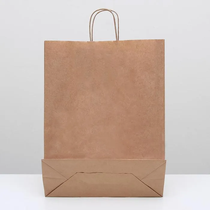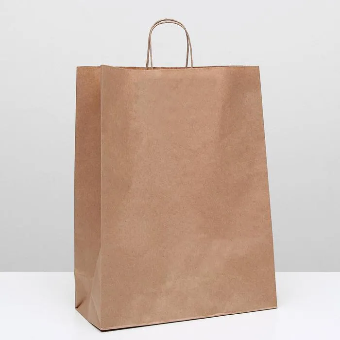 Пакет крафт без печати, круглая ручка 35×15×42 см — Характеристики
