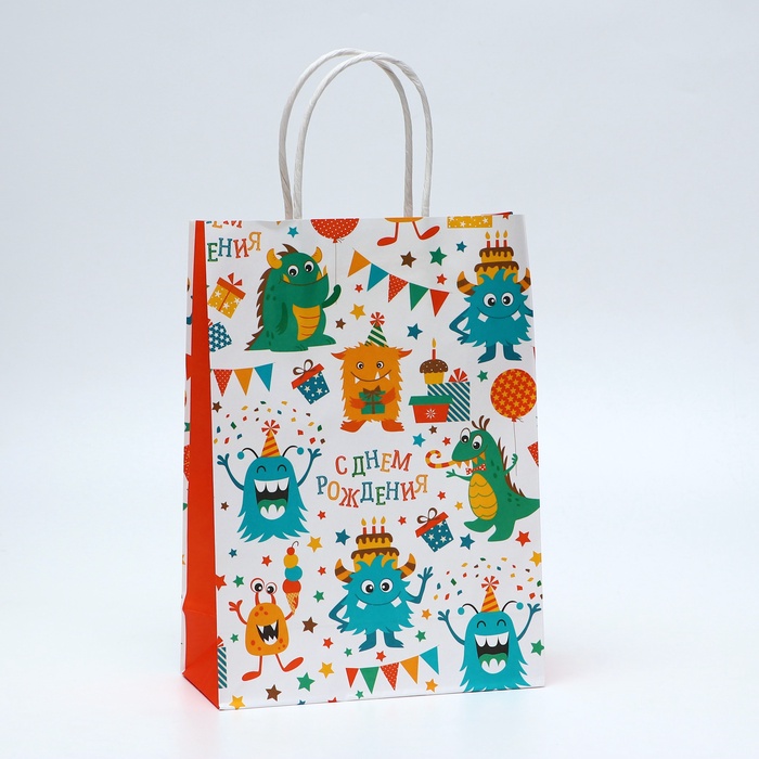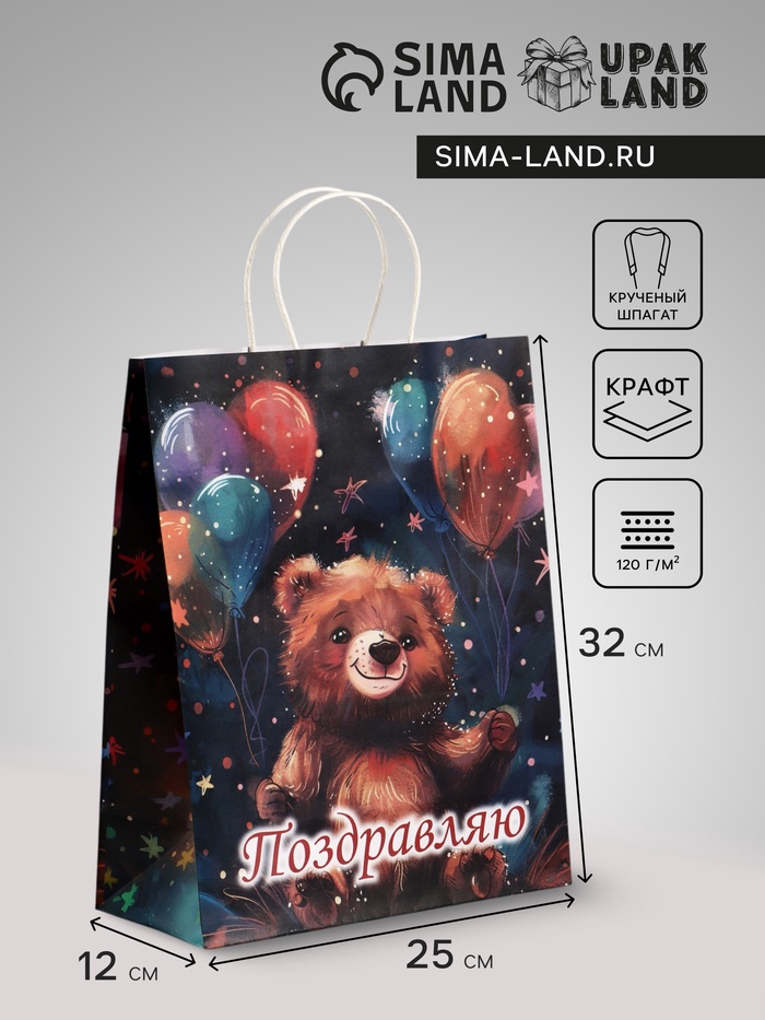 - Прочный крафт: Пакет изготовлен из бумаги плотностью 70 г/м². Он выдерживает значительный вес, не рвется при использовании и сохраняет презентабельный вид.