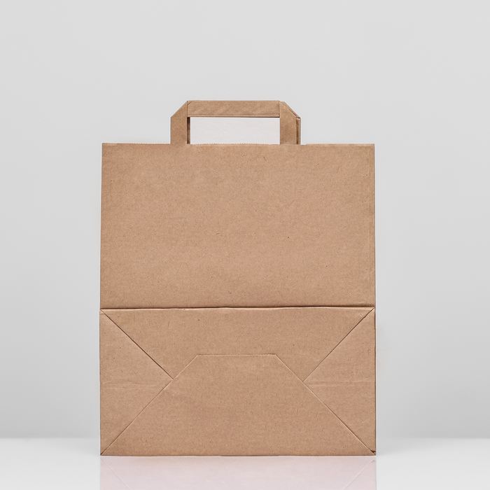 Пакет крафт без печати, плоская ручка 28×15×32 см — Характеристики
