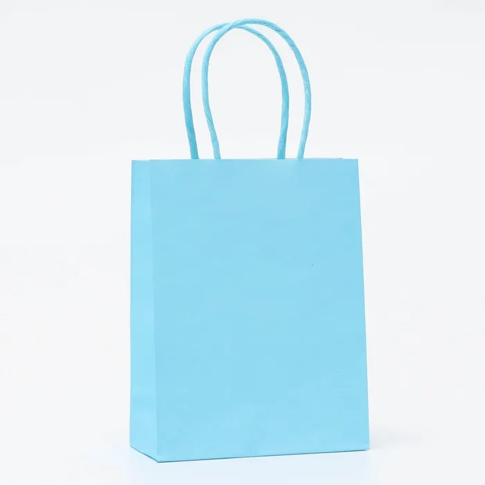 Пакет крафт голубой, круглая ручка, 15×12×6 см, 120 г — Характеристики