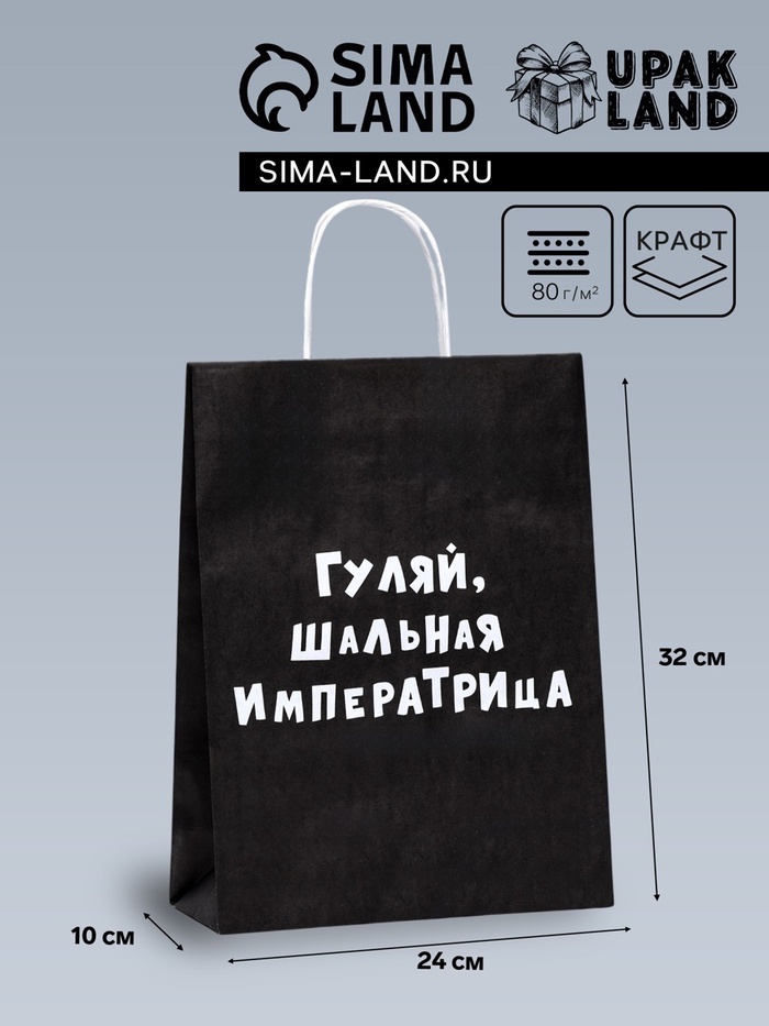 Пакет крафт "Гуляй, шальная императрица", 24×10×32 см — Характеристики